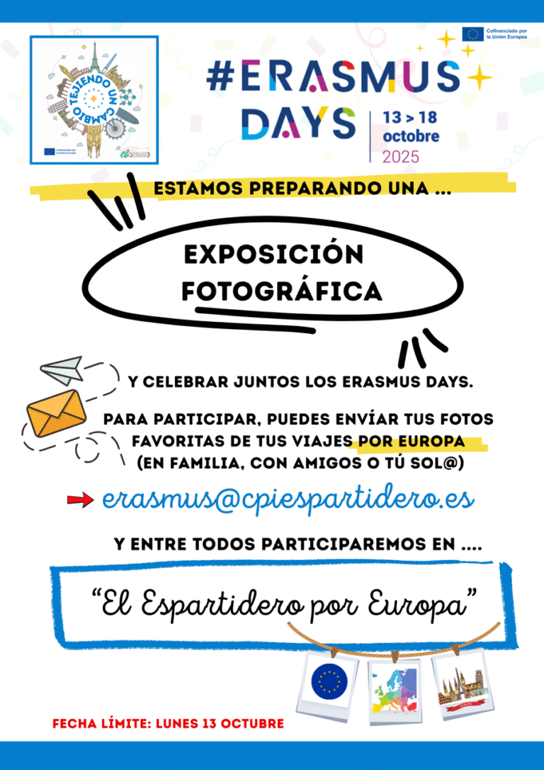 la semana próxima, los días 15-16-17 son los Erasmus Days y como hemos hecho anteriormente, aprovechamos para dar a conocer el proyecto, lo que se ha hecho ya y los objetivos de este año a toda la comunidad educativa.