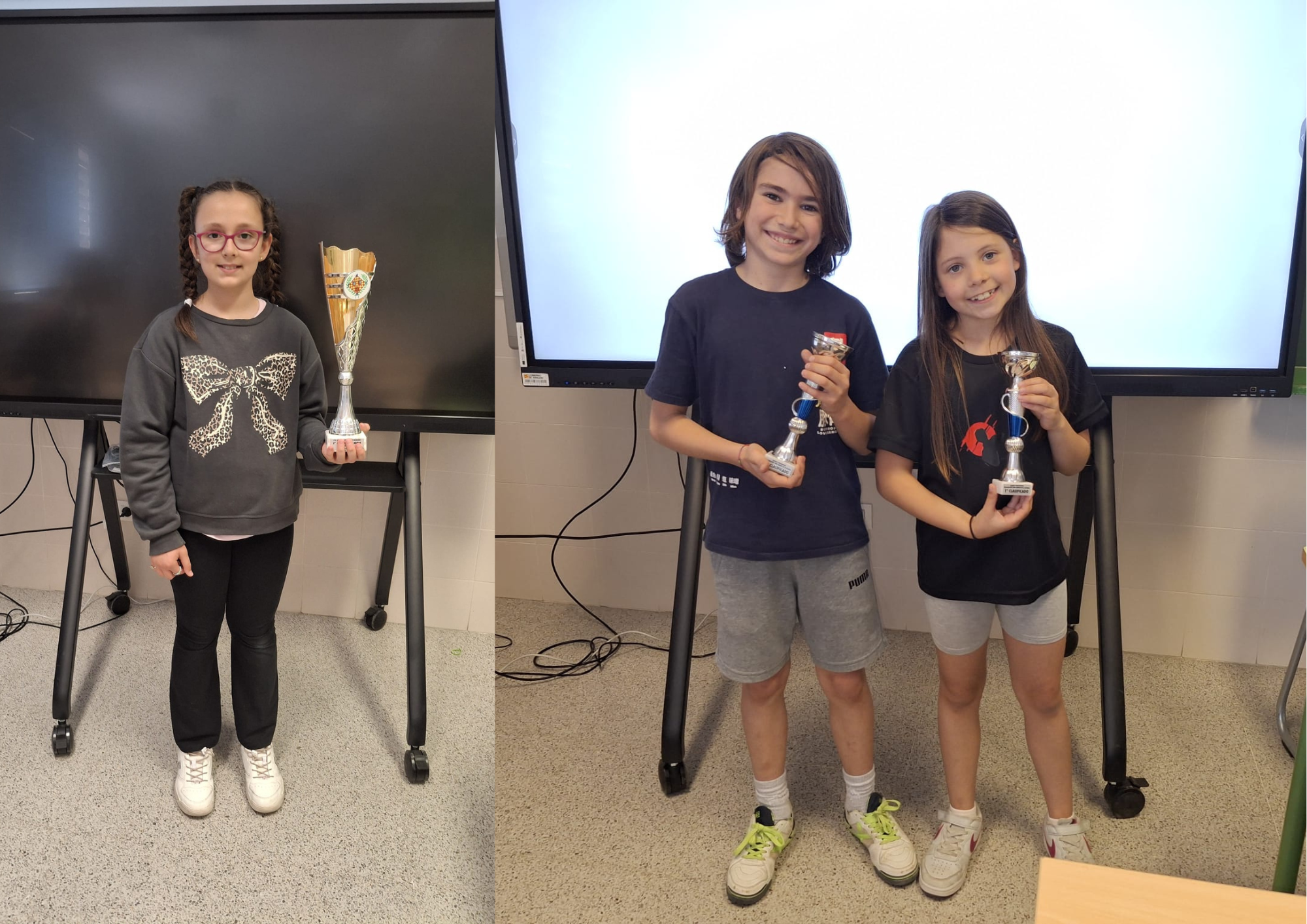 Por un lado, Noa ha ganado el primer premio en la Sub-10 de ajedrez de Aragón. Por otro lado, Diego y Valeria han sido los primeros clasificados de la Final de Karate en la escuela.